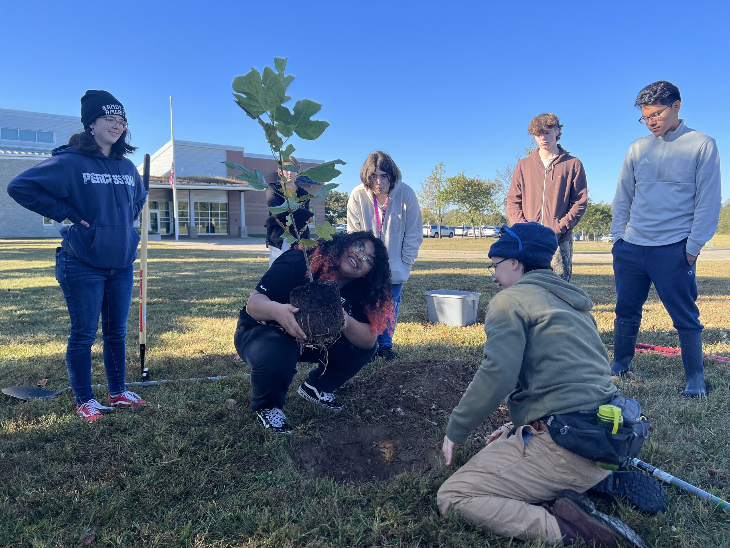 I especially love working with young children and I have had many opportunities to visit preschool and kindergarten classrooms this year. Rachel Patton, the Education Director, has developed and refined interactive lessons that pull children in and explain big concepts in ways children can understand and build on. For example, capillary action of roots is a hands-on activity where children use paper towels and colored water to see capillary action at work. Another example is “The Tree Factory” where children pretend to be different parts of a tree: roots that take in water, bark that protects the tree, branches that reach towards the sun, leaves that deliver the suns energy to tree. The activity has children clustered around one child who is the “heart,” waving their “leaves,” making slurping noises to take in water, stretching their “branches” towards the